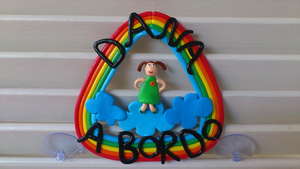 - Un original BEBÉ A BORDO hecho por Cati Hernández con Jumping Clay, una arcilla polimérica https://www.jumpingclay.es/jumping.html